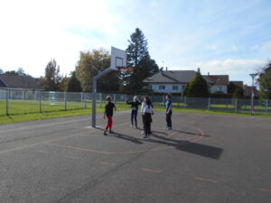 Au cours de la première période (septembre/octobre 2025), les élèves des 3 classes de l’école élémentaire ont participé à 3 séances de basket articulées autour de 3 thèmes : le dribble, la passe et le tir.