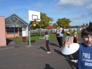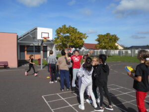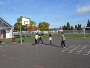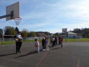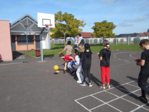 Au cours de la première période (septembre/octobre 2025), les élèves des 3 classes de l’école élémentaire ont participé à 3 séances de basket articulées autour de 3 thèmes : le dribble, la passe et le tir.